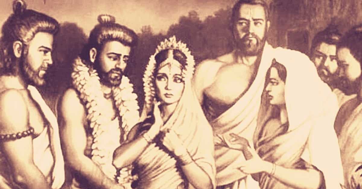 In the Mahabharata, Draupadi’s marriage to the Pandavas is a result of her mother-in-law’s command. Queen Kunti, the mother of the Pandavas, unwittingly asks her sons to share whatever they have brought home after their exile. Oblivious to their possession of Draupadi, they inform her of their acquisition. Bound by the dharma of obeying their mother’s command, the Pandavas find themselves in a complex situation, leading to Draupadi’s unique marital arrangement.