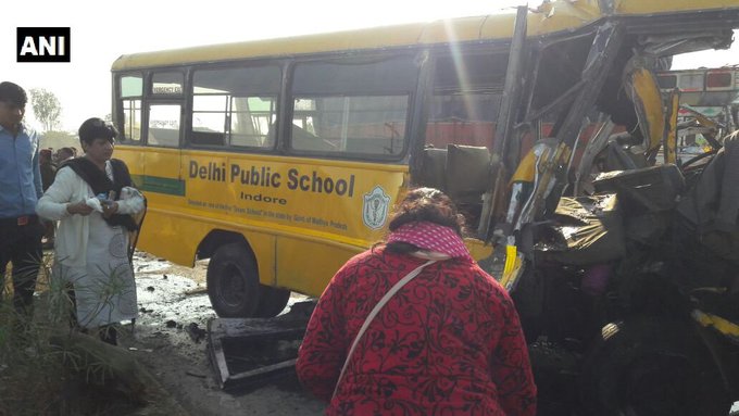 मध्यप्रदेश के इंदौर में शुक्रवार को एक भीषड़ सड़क हादसे में पांच स्कूली बच्चों सहित छह लोगों की मौत हो गई। ट्रक और दिल्ली पब्लिक स्कूल की बस के बीच हुई भिड़ंत के बाद चीख-पुकार मच गई। हादसे की सूचना पुलिस को दी गई। सूचना मिलते ही पुलिस मौके पर पहुंची। वहीं, राज्य के मुख्यमंत्री शिवराज सिंह चौहान ने घटना पर ट्वीट करके दुख जताया है। मौके पर पहुंची पुलिस ने शवों को बरामद कर लिया और पोस्टमार्टम के लिए भेज दिया है। साथ हादसे की जांच में जुटी हुई है।
